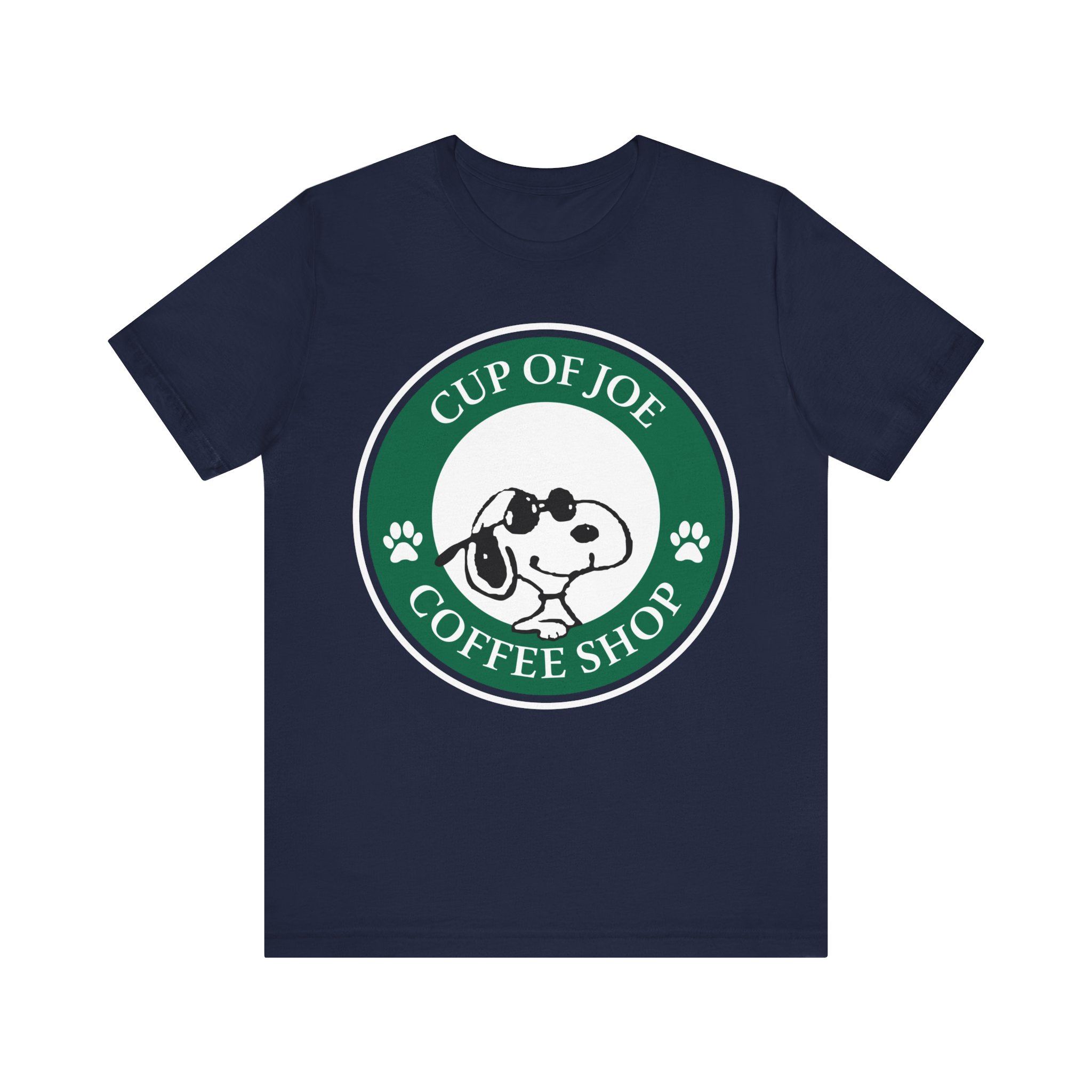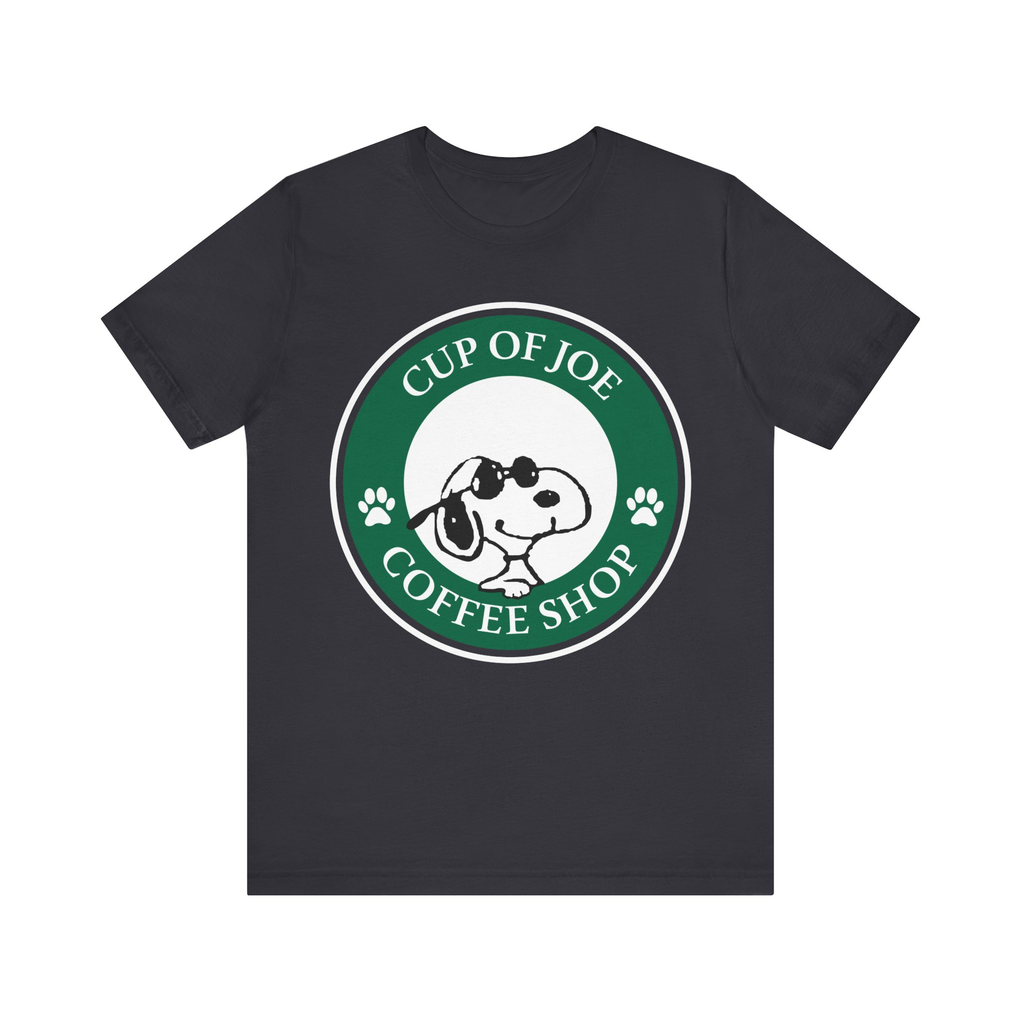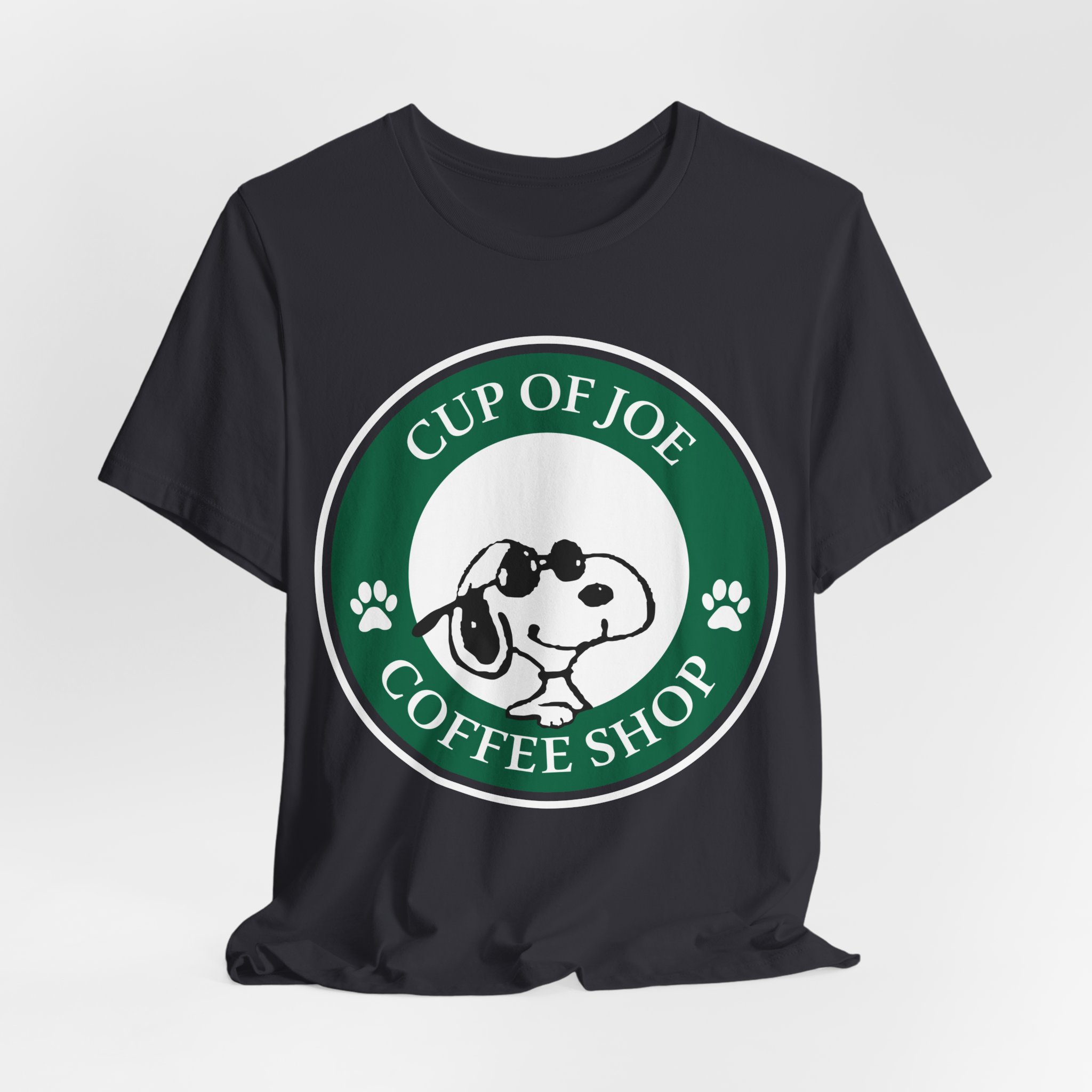 Start your day the Joe Cool way. This fun Snoopy parody tee blends classic Peanuts charm with that unmistakable coffeehouse vibe. Designed in a round emblem style inspired by iconic coffee logos, Snoopy takes center stage as Joe Cool — shades on, attitude intact. Soft, premium cotton and a vintage-style print make this a perfect fit for coffee lovers, cartoon fans, and anyone who still believes cool never goes out of style.