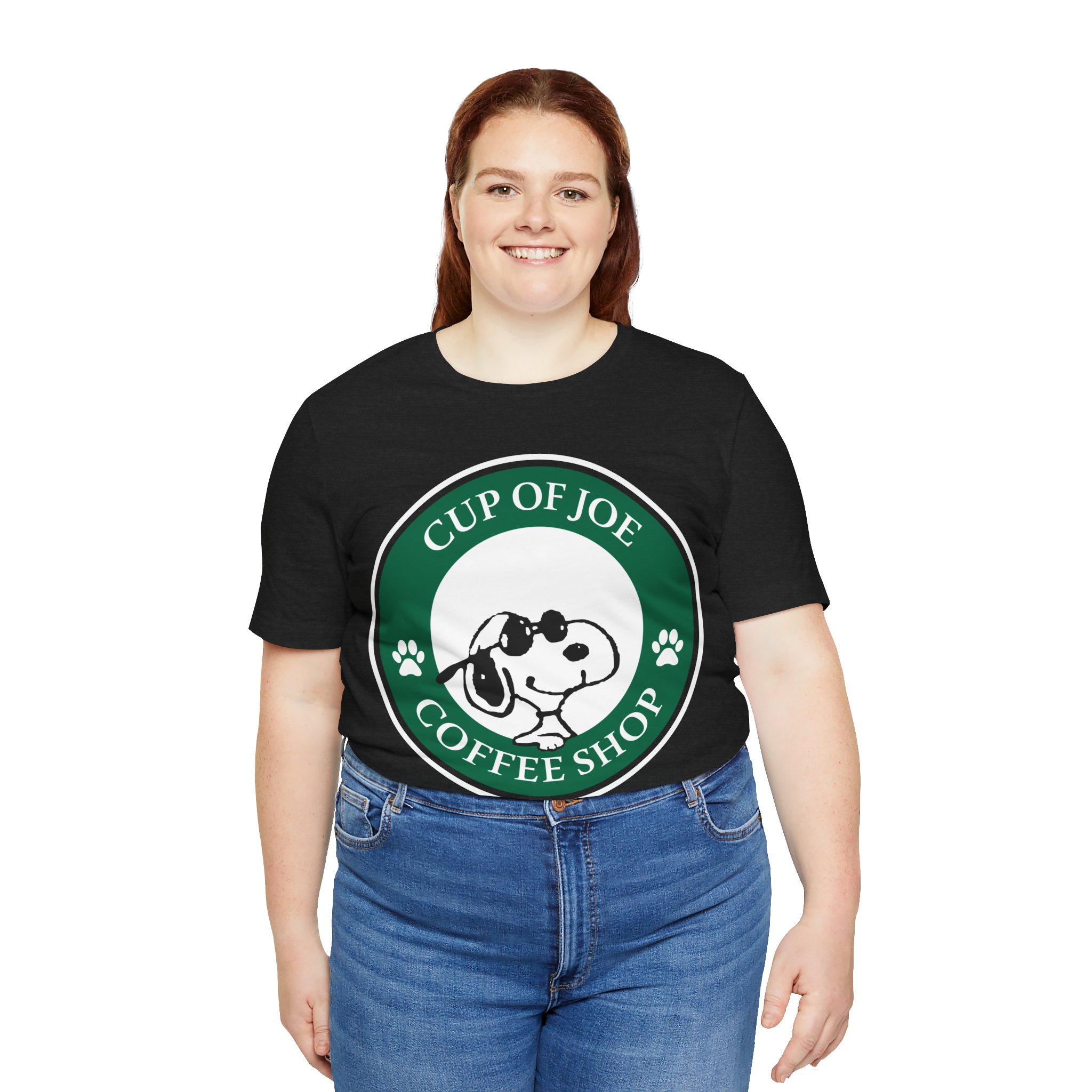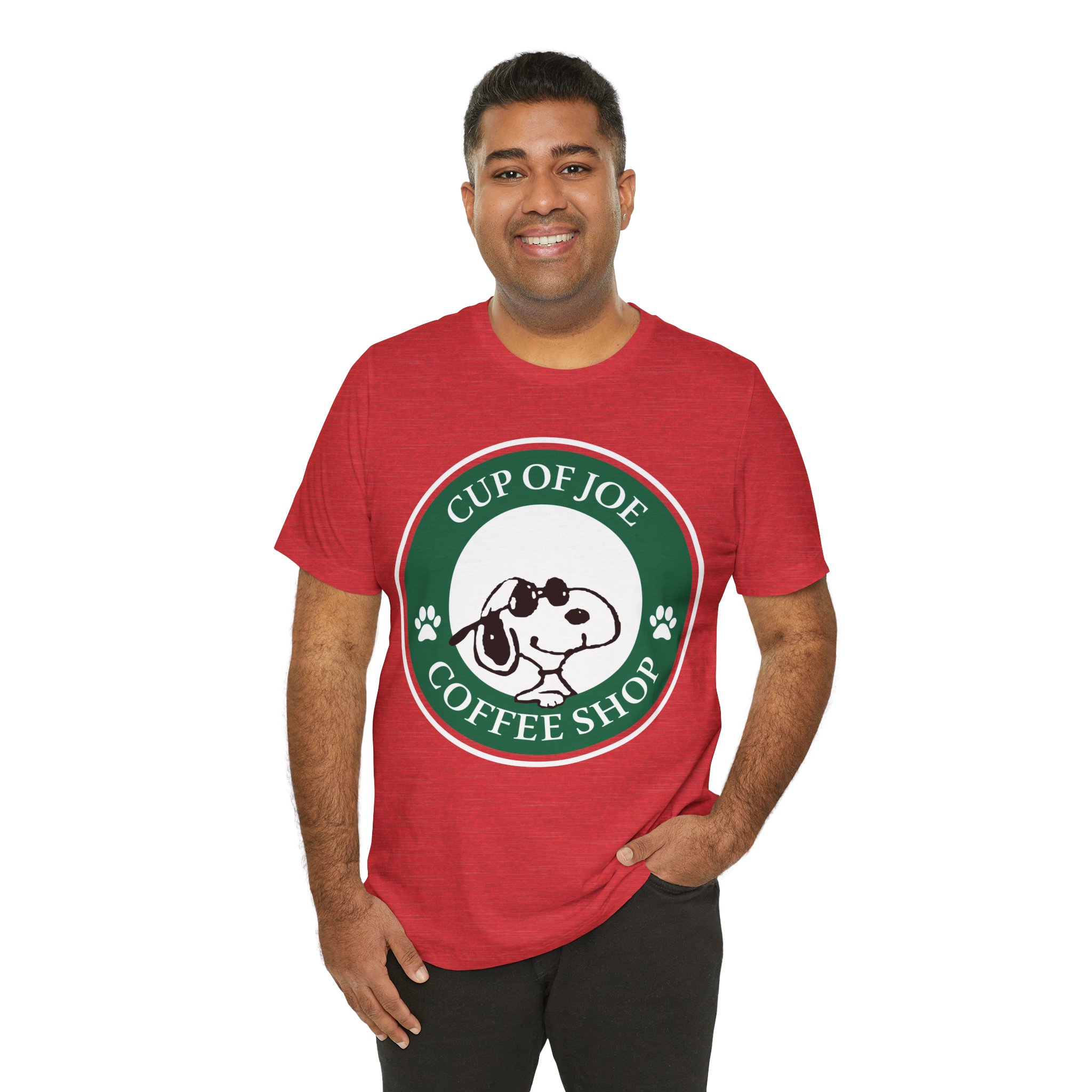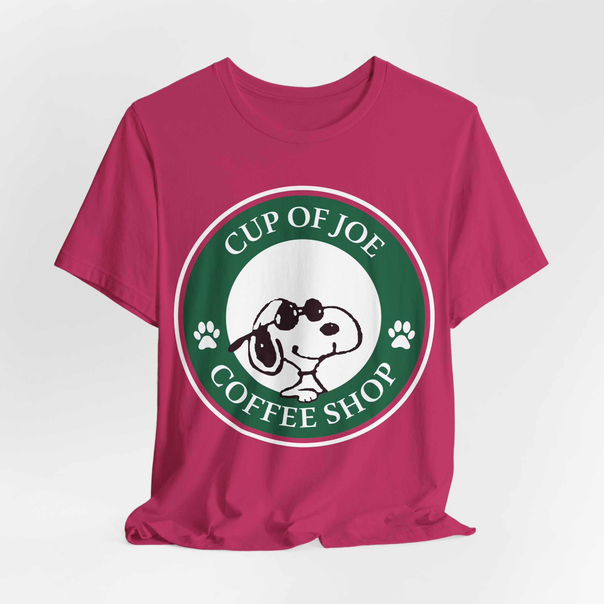 Start your day the Joe Cool way. This fun Snoopy parody tee blends classic Peanuts charm with that unmistakable coffeehouse vibe. Designed in a round emblem style inspired by iconic coffee logos, Snoopy takes center stage as Joe Cool — shades on, attitude intact. Soft, premium cotton and a vintage-style print make this a perfect fit for coffee lovers, cartoon fans, and anyone who still believes cool never goes out of style.
